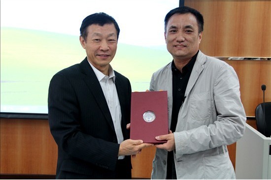 我校副校长许国彬出席了讲座并为马皑教授赠送纪念品。
