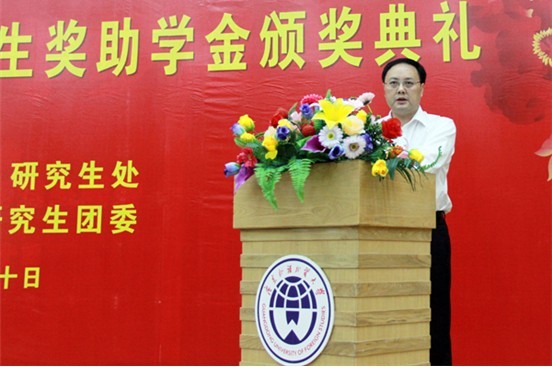 石佑启致辞时首先向三位企业家表达衷心的感谢。他认为,这些奖助学金的创立充分彰显了企业家的社会责任感以及尊重知识、人才的崇高美德。他希望此次获奖的研究生珍惜这份荣耀,怀感恩之心,做有用之人。