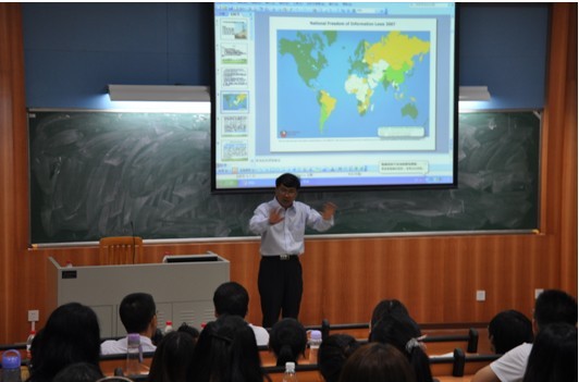 赵立群教授以“何为信息、信息公开”拉开了整场讲座的序幕。在做了简明引言论述后,赵教授从四个方面来详细阐述中国的信息公开制度与人权保障:从信息公开的世界潮流及其最新发展来论证为什么要研究信息公开制度,以及信息公开制度的建设正在促成“新的法制文明”;从中国信息公开制度建设的进程来阐述我国信息公开制度的发展阶段,以及论证了中国的信息公开法建设和对公民知情权的保护;以《政府信息公开条例》为例,从中国现行信息公开制度建设实况并结合典型案例印证了我国信息公开制度与人权保障所取得的成绩;最后,从信息公开制度中的人权保障理念论证了知情权的特殊意义。
