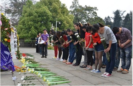 扫墓活动现场,同学们捧白菊,集体向革命先烈深鞠躬三下,并为革命先烈默哀三分钟,随后宣读了祭文,最后向革命先烈敬献鲜花。同学们在烈士陵园的纪念碑前面庄严地宣誓:发扬革命传统,继承英雄业绩,牢记人民期望,立志报效祖国。
