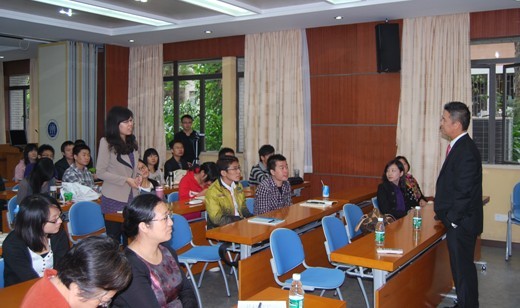 2011月11日上午,由美国伊利诺伊州库克郡行政法官James T. Hyun主讲、以“美国联邦与州刑法”为主题的精彩讲座在第六教学楼106室举行。法学院杨斐老师、杨桦老师、常廷彬老师、叶昌富老师、梁晨老师等出席了本次讲座,法律硕士教育中心2010级2011级法律硕士同学参加了本次讲座。本次讲座由梁晨老师主持。