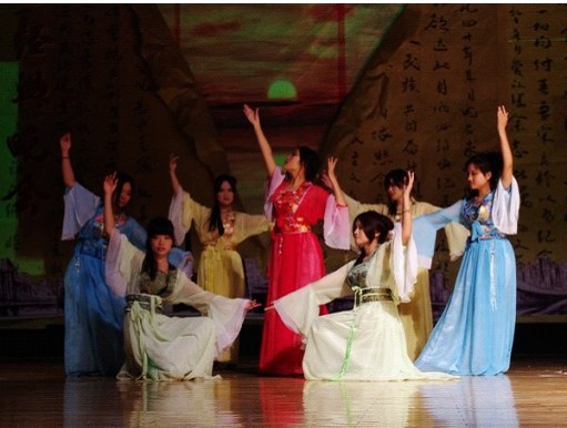 以”铭记历史,传承使命”为主题的视频后,法学院艺术团舞队首先献上古典与现代气息融合的舞蹈《舞迹》予以作为开场的序曲。紧接着,晚会上下篇依次拉开帷幕。