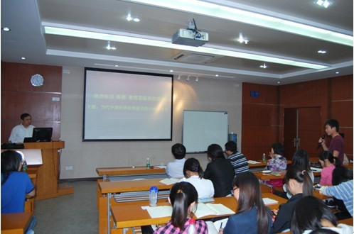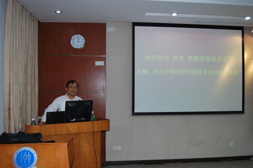 报告中,陈教授首先指出,公权与私权的合理配置是经济法制建设的重点。陈教授回顾了建国以来经济法律制度建设的发展历程,特别是改革开放以来的经济法制。改革开放以来,社会主义市场经济体制在我国逐渐确立,经济法制建设取得了长足的进步,以《民法通则》、《公司法》、《反不正当竞争法》、《物权法》、《反垄断法》等为代表的一系列社会、经济法律的公布实施,为我国经济建设做出了重大贡献。