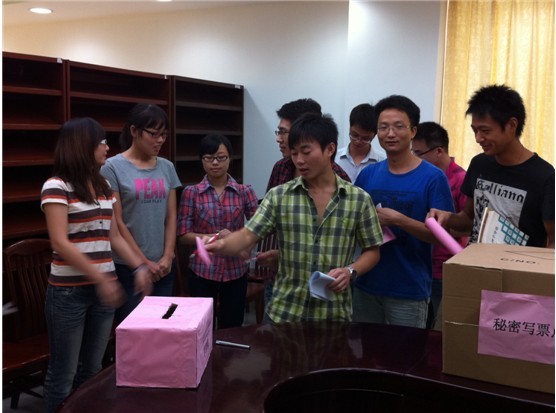上午9:00,首先由法学院金良成书记宣读了有关选民投票注意事项,监票员、计票员当众检查票箱以示公正,并依据选民证、选民委托书分发选票,选举投票正式开始。北校区法学院的投票点现场秩序井然,氛围热烈而庄重,法硕师生们凭选民证领取选票后,依次走进设置投票箱的办公室,在秘密写票点填写完选票后,小心翼翼地将选票投入票箱,并按顺序走出投票室。“这是我第一次参加人民代表的选举感觉挺神圣的”,一位2011级的同学投票结束走出投票办公室后说到。
