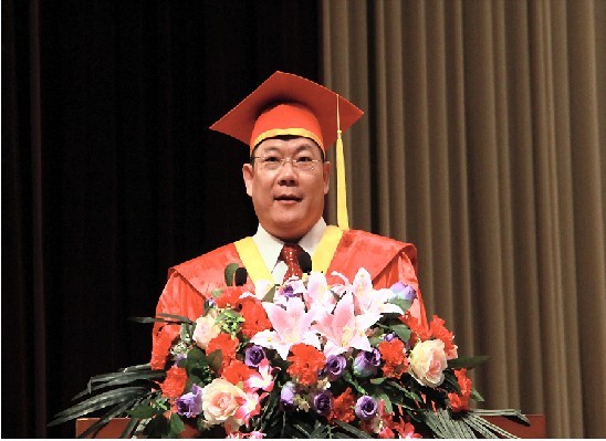 仲伟合在致辞中,延续了两个月前在2011届毕业典礼发表讲话时,引用时下最流行的网络热词和时事热点,以略带轻松活泼的语言风格活跃了全场的气氛。他首先欢迎2011级研究生的到来,并对研究生们在广外的求学前景致以真挚的祝福。仲伟合表示:“选择广外,有的人是看中了广外涉外学科的资源优势,有的是看中了广外的优美的校园环境。还有人是看中了广外广阔的就业前景和毕业生强劲的就业竞争力。我想说,这都对,但都不全对,广外最打动人的地方是46年积淀下来的不断创新的精神。”