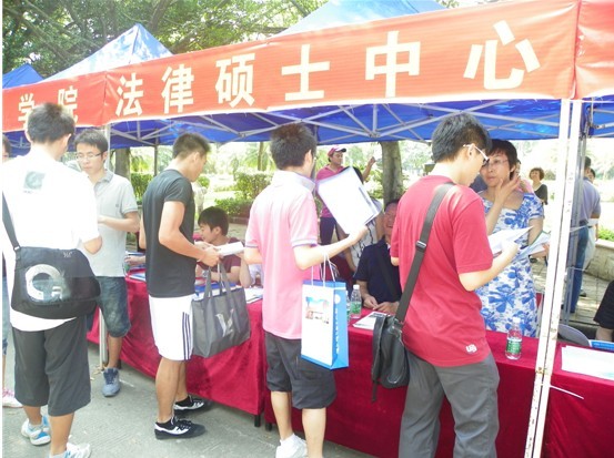 在咨询点,我们制作了多块宣传板,展示法律硕士教育中心的整体情况、办学理念、招生录取原则、招生类别、2012年招生主要特点、奖学金政策、培养模式等,同时,老师和同学们还发放了宣传材料。部分学生对我校非常关注,提出了许多有针对性的问题,招生宣传老师进行了耐心细致的解答,有些学生对我校“法律+外语”的办学理念十分认同,决定来我校继续深造,并希望尽快感受我校优美的校园环境及“学在大工”的优良学风。