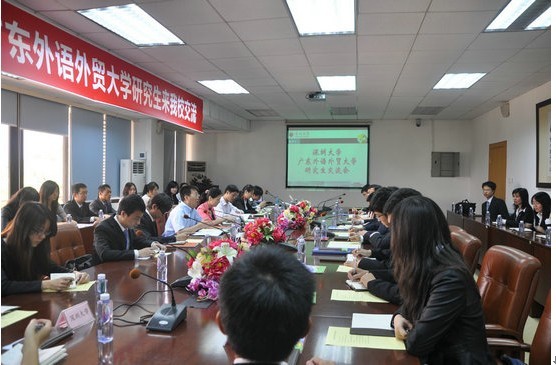 4月22日,应深圳大学研究生院(筹)邀请,我校研究生工作部、研究生会代表前往深圳大学进行交流活动,受到深圳大学研究生院(筹)的热烈欢迎。广东外语外贸大学研究生工作部部长康为茂,研究生会指导老师苏高阳,研究生会、语言学习与跨文化培训中心学生干部20余名一同前往参与了交流会。其中法学院法硕中心的王雪峰、孟敬涛、武林同学代表法学院参与了交流活动。