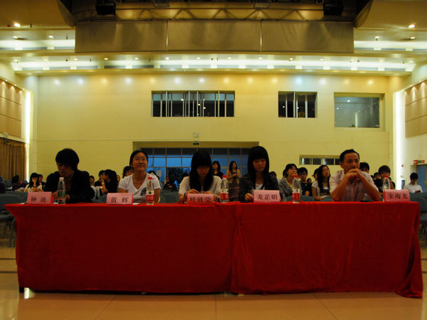 5月25日晚,法学院第四届团体英语魅力大赛决赛在南校学生活动中心顺利举行。英语教育学院的黄辉老师和学生钟迪、叶欣莹、麦芷娟则担任本次“英魅”的评委,法学院团委书记朱海龙作为嘉宾出席了本次决赛。