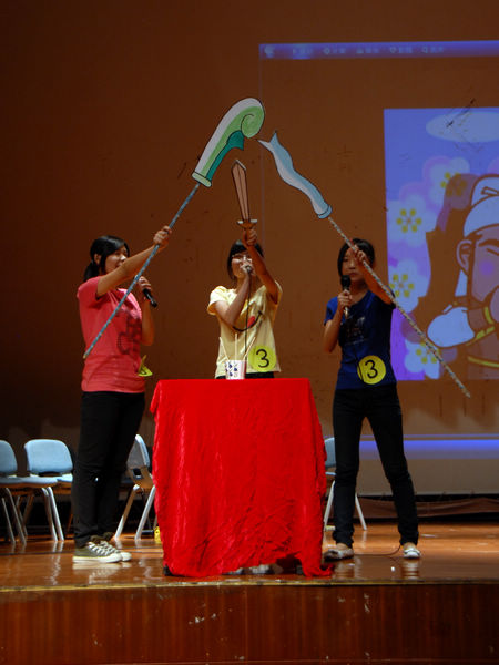 经过了穿插的“大富翁”游戏后,进入本场比赛的重头戏“情景扮演”,各队抽签决定情景扮演的主题后,现场展示该情景。“Tip-Top”队改编经典的《桃园三结义》,并配合动画视频,手持道具演绎了不一样的“刘关张结义”。“ Charming”队的三位队员用精湛的演技出演了“粉丝追星”这一幕,再次体现了该队的诙谐风格,并且最后一语中的,道出主题“Chasing the star rationally”,使表演上升了一个层次。