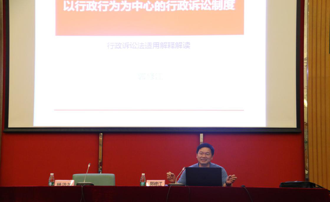 【第二场】6月30日下午,讲座主题为“以行政行为为中心的行政诉讼制度——行政诉讼法适用解释解读”,由最高人民法院行政审判庭副庭长郭修江法官讲授。讲座中,郭法官梳理了自1989年《行政诉讼法》通过以来,我国行政诉讼三十年间在曲折中发展的历程,并探讨了在此期间我国行政诉讼相关立法、司法的观点流变。郭法官认为,全面诉讼类型化的行政诉讼改革,并不符合1989年《行政诉讼法》奠定的裁判模式,也有违我国行政诉讼的基本法理,应当建立以“监督权力”“保护权利”“实质化解行政争议”为三阶层的行政案件审判思路,使行政诉讼制度真正以行政行为中心,实现《行政诉讼法》的立法目的。讲授结束后,学员们踊跃发言提问,郭法官予以了悉心解答。