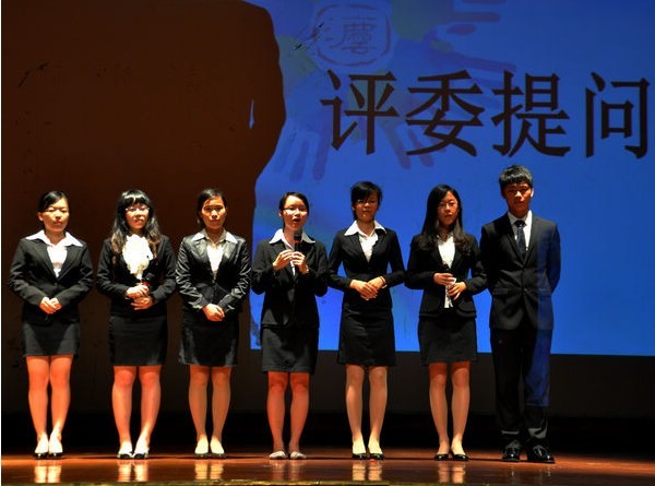 主持人的开场致辞,以及第六届“与法同行”调研大赛宣传视频的播放结束后,决赛现场的战火正式点燃。经过了初赛和复赛,参加决赛队伍都表现得沉着淡定,对各自的调研题目作深入浅出的分析,有理有据,令人信服。