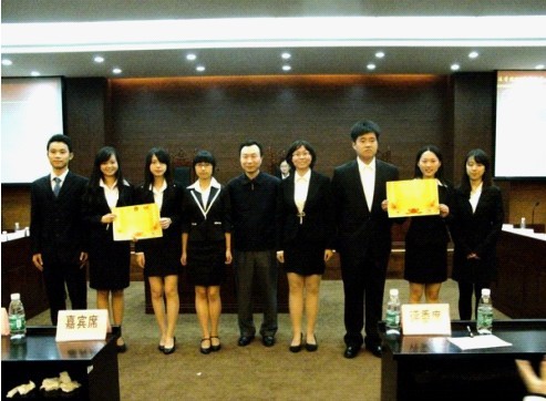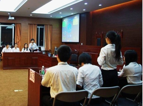 11月10日晚,聚焦法律与生活——法学院2011年辩论赛决赛在第一模拟法庭敲响擂鼓。国政与外交展开季军赛的对决,冠军则由法一与法四来争夺。法学院金良成书记、潘高峰老师、团委学生会主席团成员莅临比赛现场指导。本次比赛的评委由我院的辩论队员与部分外院的辩论队员共同担任,我院毕业校友、学校校办工作人员郑慧琪作为评委出席了比赛。