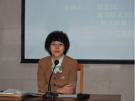 2011年11月24日下午,广州市天河区人民法院院长、“许霆案”主审法官甘正培应邀到我校为法硕学生作了一场题为“许霆的罪与罚”的讲座。讲座在六教广晟讲堂举行,由法学院院长蔡镇顺教授主持,常廷彬、叶昌富、杨帆、张爽、孟静、宁少媛老师出席了讲座。