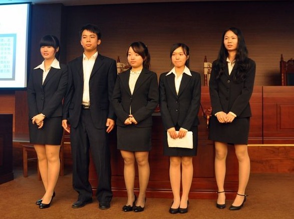 法学的各组展示都拿出了看家本领,竞争十分激烈,最后“五叶枫”以《论有偿认领遗失物制度的建立》为主题的论文夺得冠军。他们以直播访谈间的形式开场,抓人眼球,迅速切入主题,有力的阐述了自己的论文主题。“2012”选择了短剧表演开场,并在论述过程中以模拟法庭的形式进行论述。“L.E.肆界”关于慈善的主题在论坛中得到充分讨论,“佚名惊人”则是更为贴近生活,对于广外法学实践给出了详细的研究报告和建议。“水晶橘子”和“法制公民”都选择了以电视节目的形式作报告展示,无论是前者的“锵锵2人行”还是后者的“法制在线”节目都非常专业化。