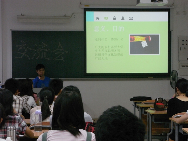 5月17日晚6时30分,三下乡交流会于教学楼A203举行,本次活动邀请到09级三支获奖队伍的队长就参加三下乡的具体要求、注意事项等方面做了详细介绍,为10级各筹备队伍提供宝贵的经验。