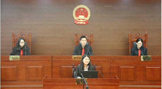 此次为刑事模拟法庭。首先,书记员宣读了庭审规则。接着进入法庭调查阶段,由控辩双方对案件进行陈述,并提交双方证据。在辩论环节,大家思维敏捷,以犀利的言辞针对对方的漏洞作出有力的反击,使得庭审辩论进入一次又一次的高潮,旁观同学不吝鼓掌和喝彩。法庭最后陈述阶段,“被告人”诚心悔过。当庭宣判阶段,“审判长”公正判决。